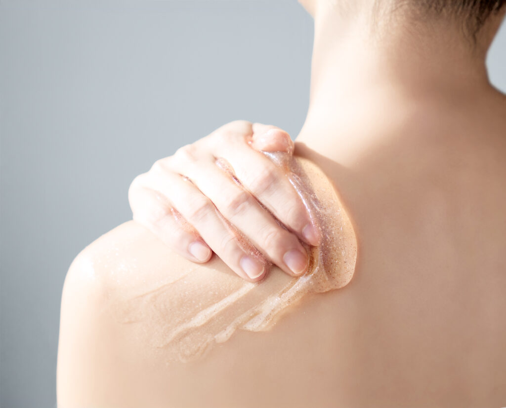 [1] 1つで<ボディーソープ>と<スクラブ>、汚れ除去と角質オフのデイリーケア
