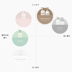 ※1 モイスト・ディープモイスト・クリアクレンズ:スクワラン(エモリエント成分)NIKKOL シュガースクワラン®は、日光ケミカルズ株式会社の登録商標です ※2 オリーブ油グリセレス-8エステルズ(洗浄成分)